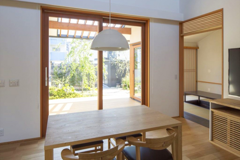 集いが広がる二世帯住宅。 テラスや屋上で、アウトドアの楽しみも満喫しています。