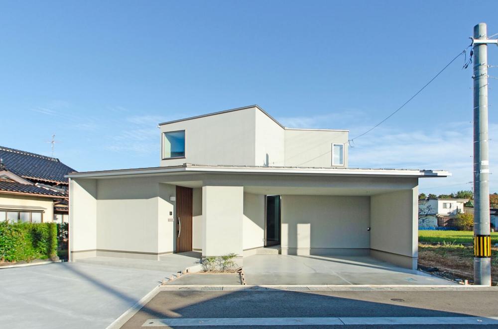 切妻屋根の、家族がつながる”ほぼ”平屋