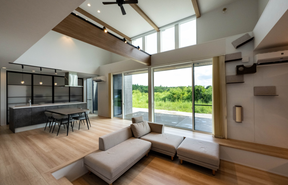 愛猫と暮らす ダウンフロアの平屋の家