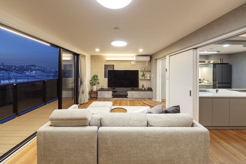 LDKのある3階には広いテラスを設け、夜は間接照明で美しくライトアップ。