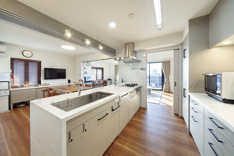 キッチンや洗面台、リビングや玄関の収納は全てオーダー品。