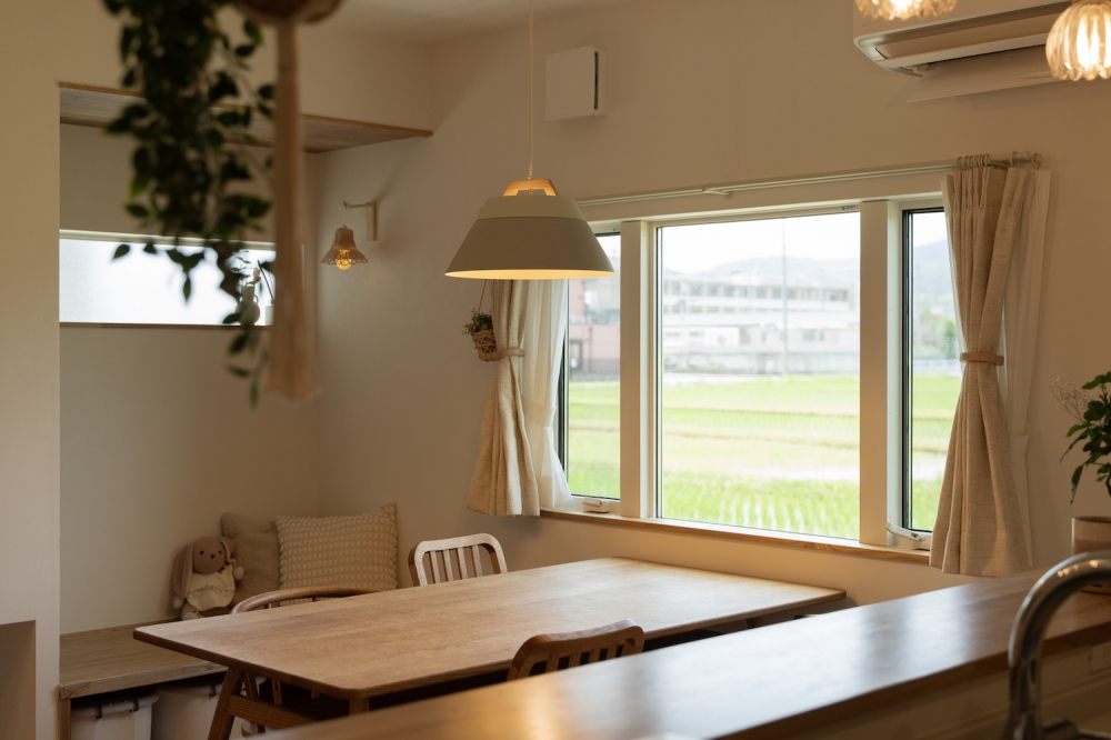 「ここにダイニングを持ってきて景色を切り取ろう」と、四季を感じる素敵なリビングに。