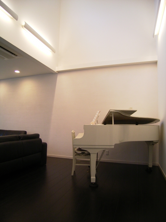 ピアノコーナーの上は気持ちのいい吹き抜けに