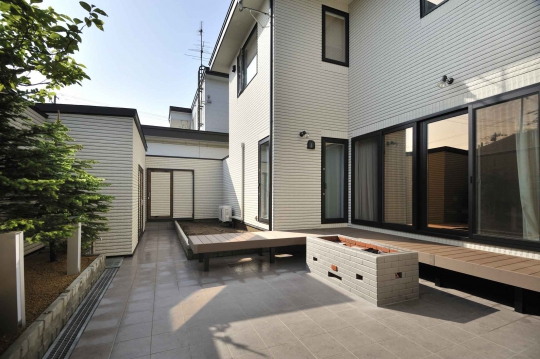 中庭は住宅とガレージ、物置、高さ2.5mの塀で 囲い込むように配置されています