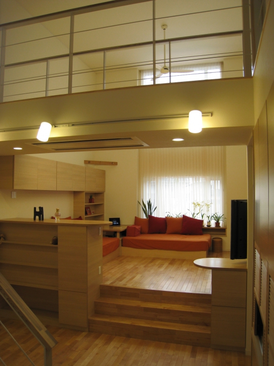 スキップフロア、渡り廊下など立体的な構成で変化に富んだ室内