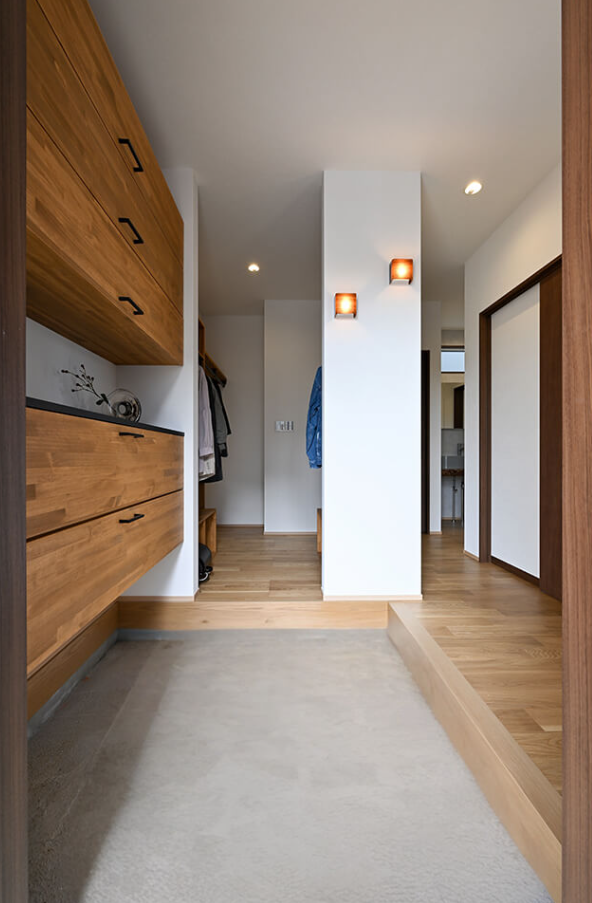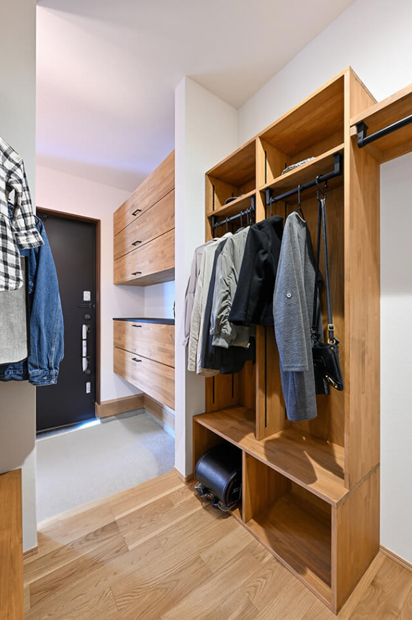 玄関からつながる ファミリークローゼットで スムーズな動線