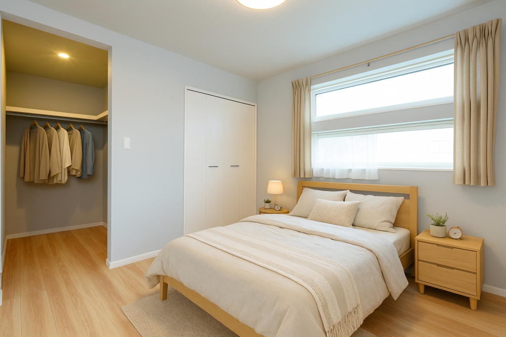 高窓とウォークインで、静かに整うリラックス空間。(※写真を元に家具や小物を配置したイメージ画像です。)