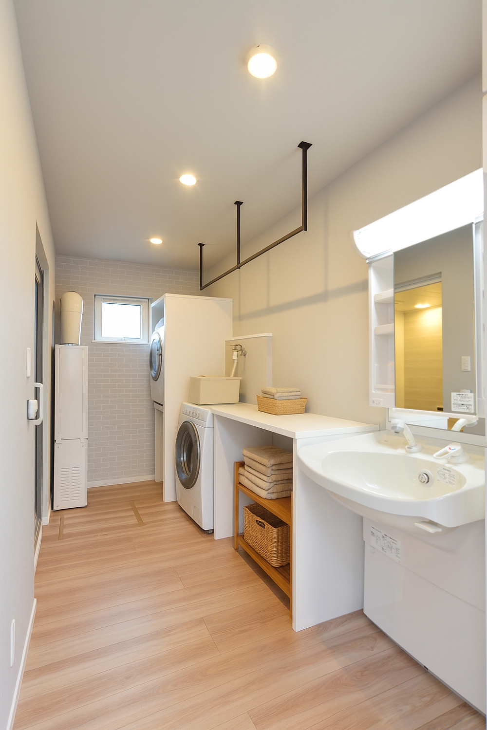 洗う・干す・たたむが一箇所で完結。家事ラク動線が光る洗面脱衣室。(※写真を元に家具や小物を配置したイメージ画像です。)
