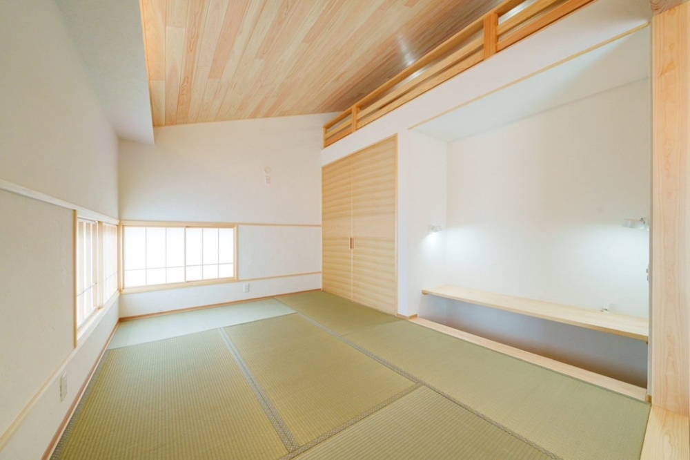 ゆったりと、心穏やかに過ごすことのできる畳コーナー。上部にあるロフトの部屋とは繋がりをもたせました。