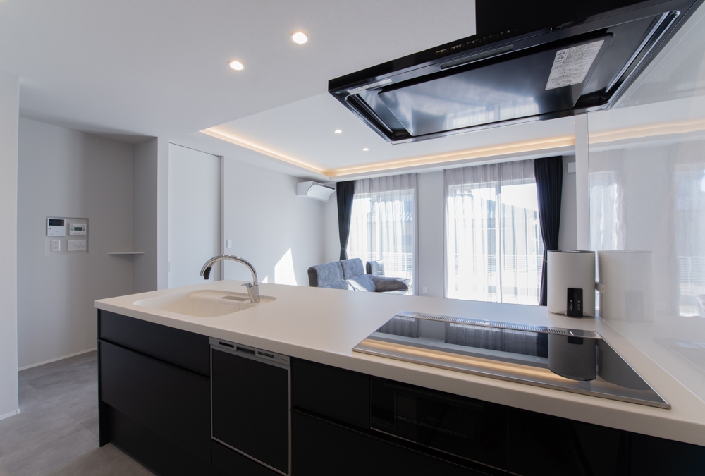 また、キッチン家電や生活用品はすべて扉付きの収納に収め、廊下にもクローゼットを設置することで、空間全体をすっきりと保つ工夫がされています。