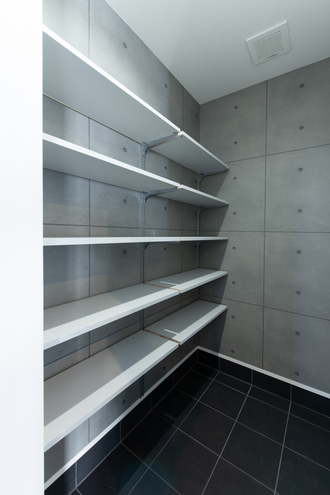 シューズクローゼットは、可動棚で、収納する物の大きさに合わせて