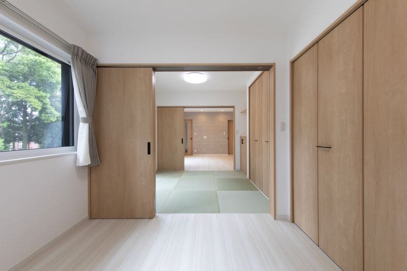 リビングと一体で使える和室。引き戸で仕切れば来客時の空間としても活用できます。さらにその奥には、お母様の居室を設けました。