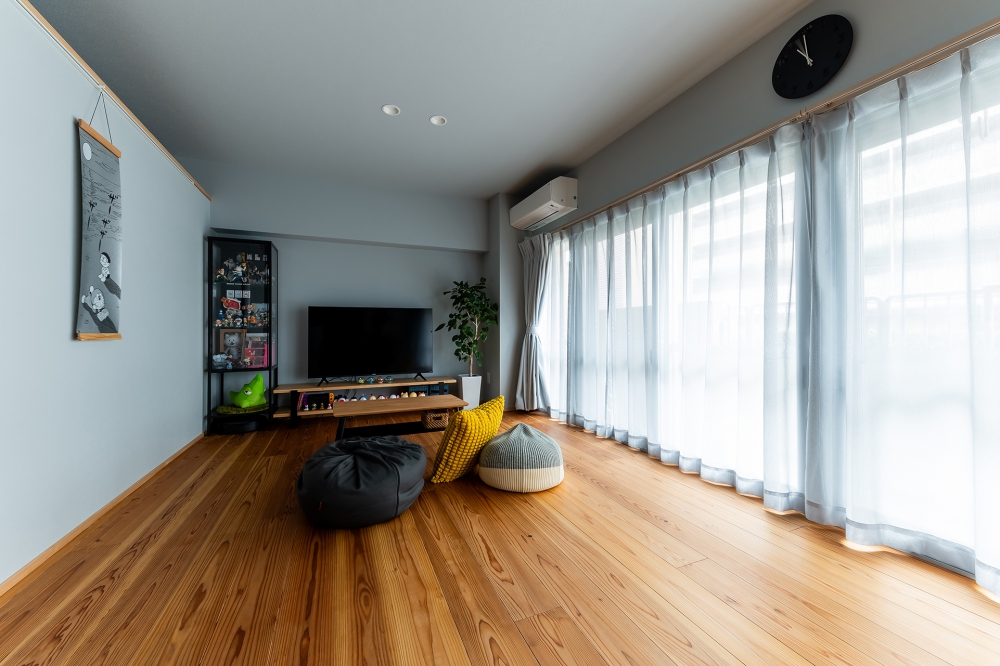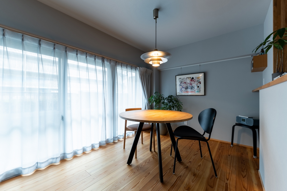 「中古マンションをリノベーションして単身で住める家が欲しい。」とご相談をいただきました。候補にしていた複数の物件の中から、利便性が良く、管理が行き届いていた築47年の中古マンションをご購入。築年数が経過していることもあり、内装や設備が古く、断熱性が低い状態だったため、スケルトン解体を行いフルリノベーションをしたお住まいです。