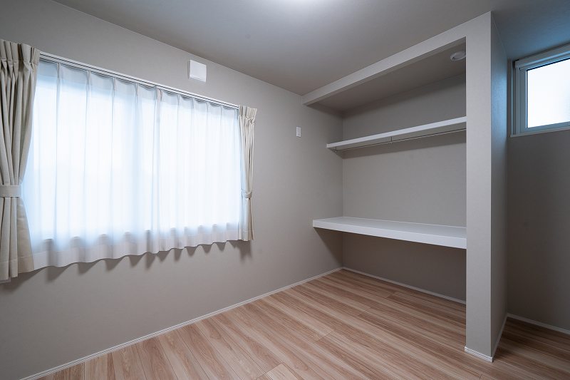1階の寝室は、お母様の暮らしやすさを第一に考えて設計し、玄関や水廻りに近く、移動が負担になりにくい間取りとなりました。 収納には中段を設け、布団や季節ものの出し入れもラクに行えます。