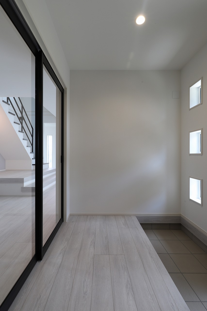 床まで続く3つのFIX窓から差し込む光が、家の中を美しく照らしだす