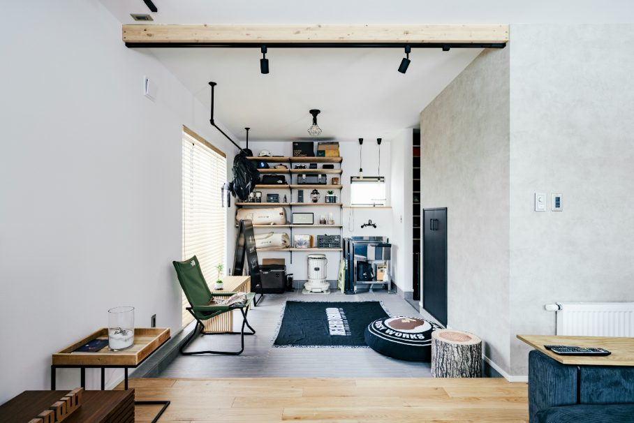 趣味のものをディスプレイした土間