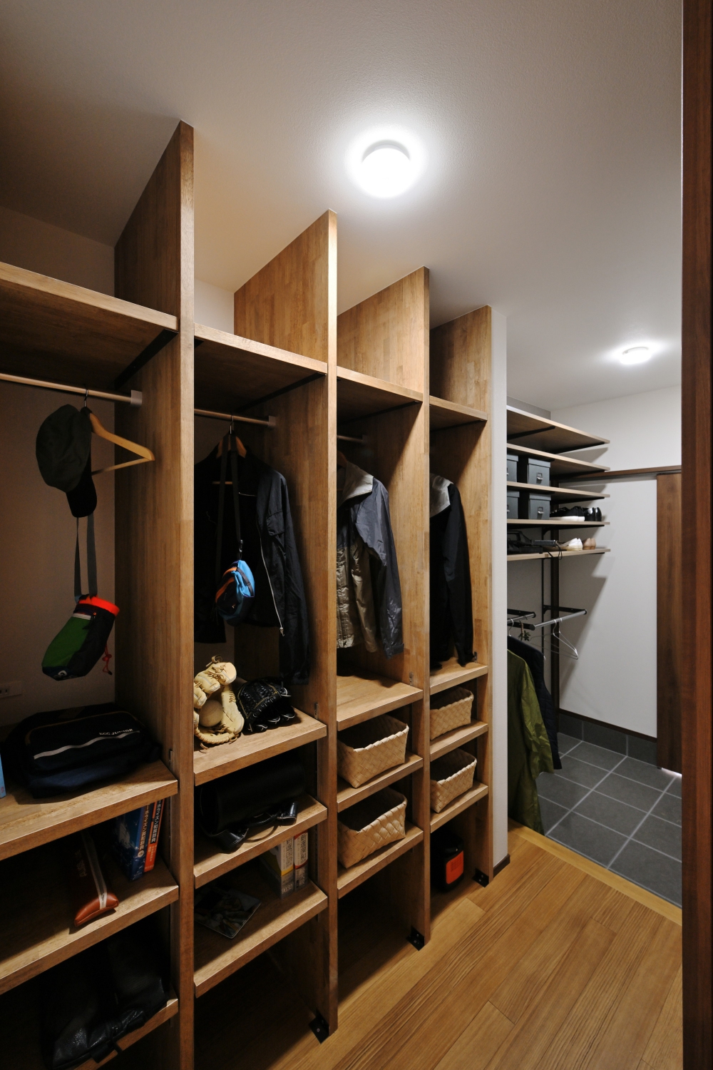ファミリークローゼットは家族それぞれのスペースを作成。お子様に片付けの習慣がつく。