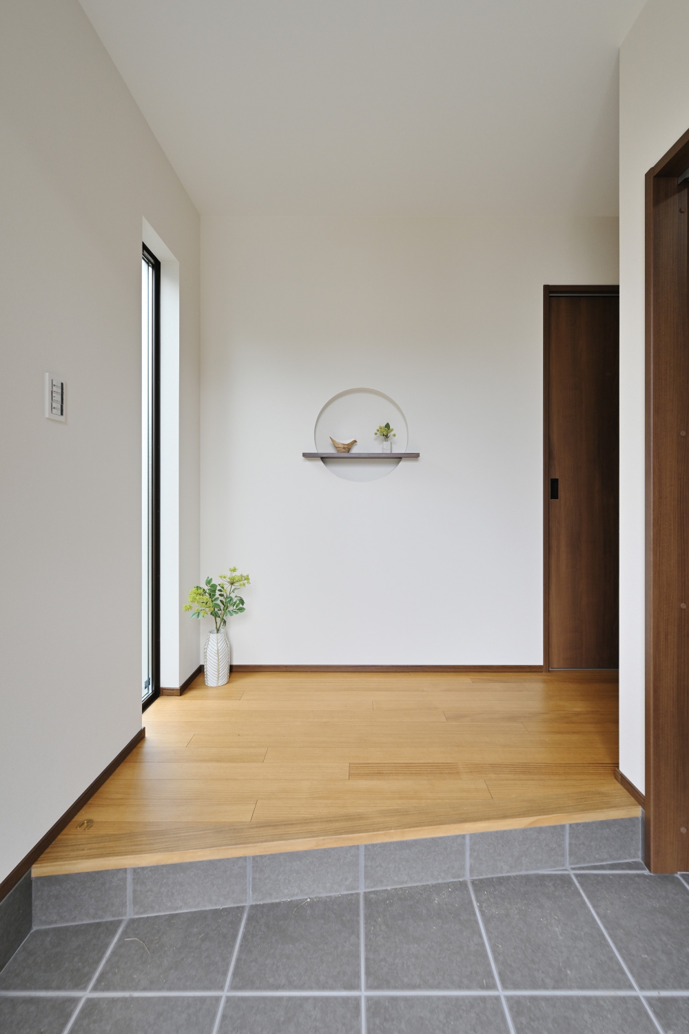 玄関には丸いニッチを採用。写真や小物をディスプレイできるように。