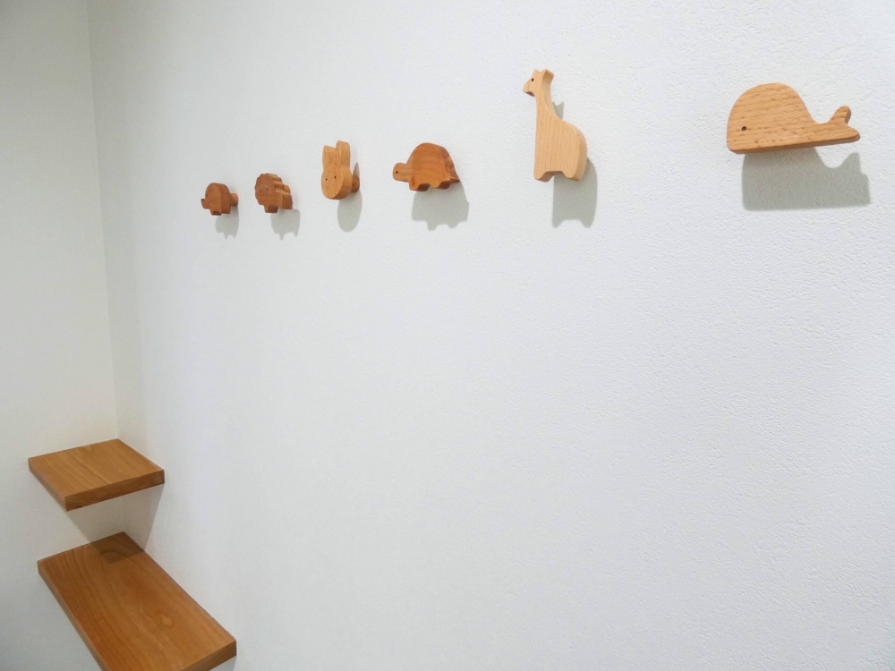 一歩室内へ入ると、そこには住む人の遊び心が溢れる空間が広がっています。あえて下駄箱を置かずにすっきりと仕上げた玄関ホールでは、可愛らしい動物モチーフのコート掛けが家族やゲストを優しく出迎えます。