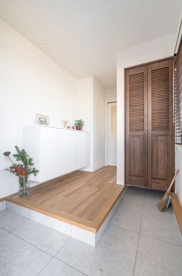 L字型の玄関土間は奥行を演出でき、使い勝手も◎