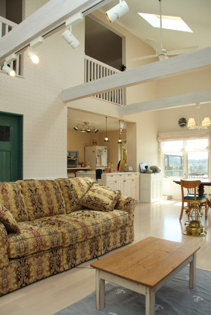 吹抜の広いリビングルームはアメリカにいる気分