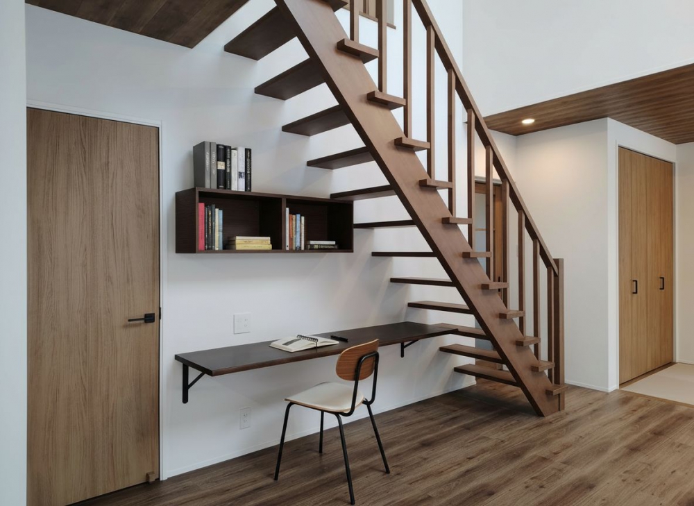 階段下を利用して、お子様の勉強やパソコンスペースなど、使い勝手のよいカウンターです