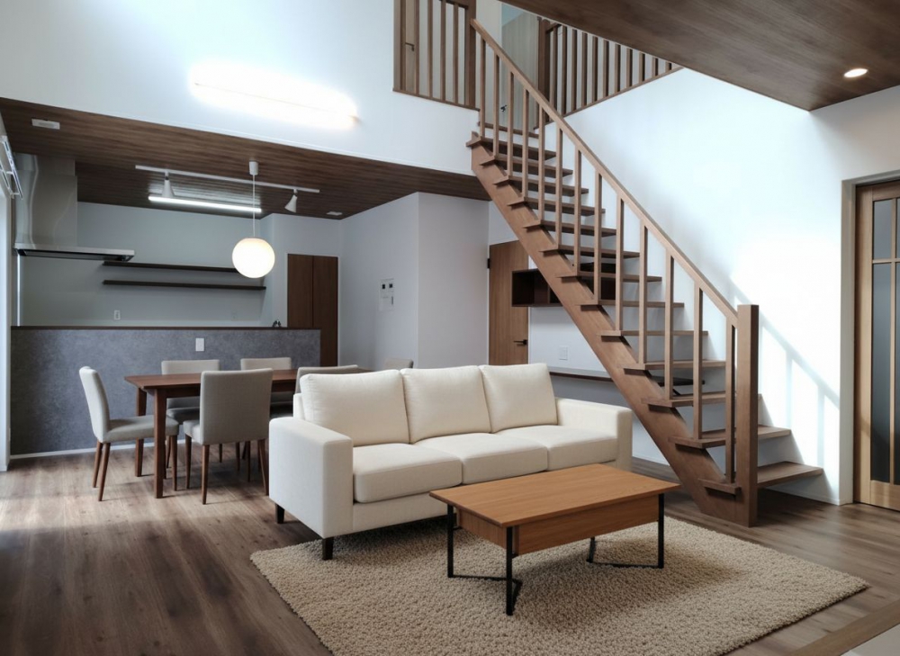 開放感のある吹き抜けリビングは、誰もが一度は憧れる空間。でも、断熱性が低いと「冬は寒い」という不安もつきものです。「ママらくの家」は、高い気密・断熱性能で空気を逃がさず、家族が集まるリビングを一年中あたたかく包み込みます。
