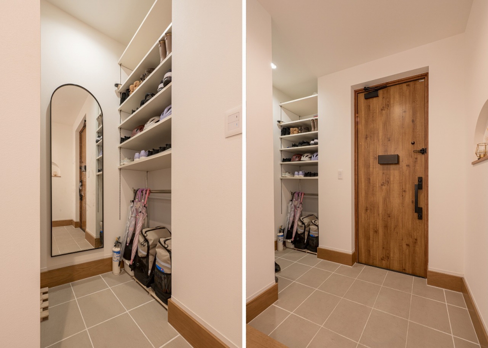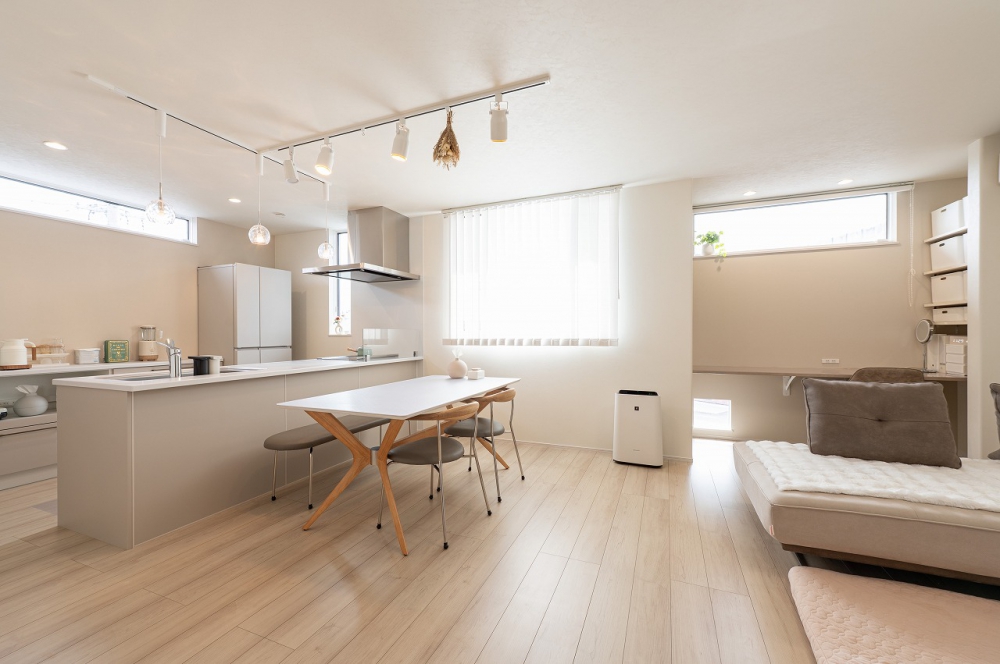 太陽光発電10.56Kwと蓄電池9.7KWh+HEMSを標準仕様とし、夏の暑さや冬の寒さなど外気温の影響をうけにくい高気密・高断熱仕様と、耐震等級3+制震装置を標準搭載した高耐久住宅で、環境や地震から大切な住まいと家族を守ります。