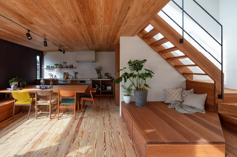 梁を見せる天井や土間収納など、様々な提案やアドバイスがとても参考になりました。リビングの本棚やベンチ、パソコンデスクや棚などオーダーした造り付けの家具が室内のトーンを揃え、統一感のある空間を実現することができました。