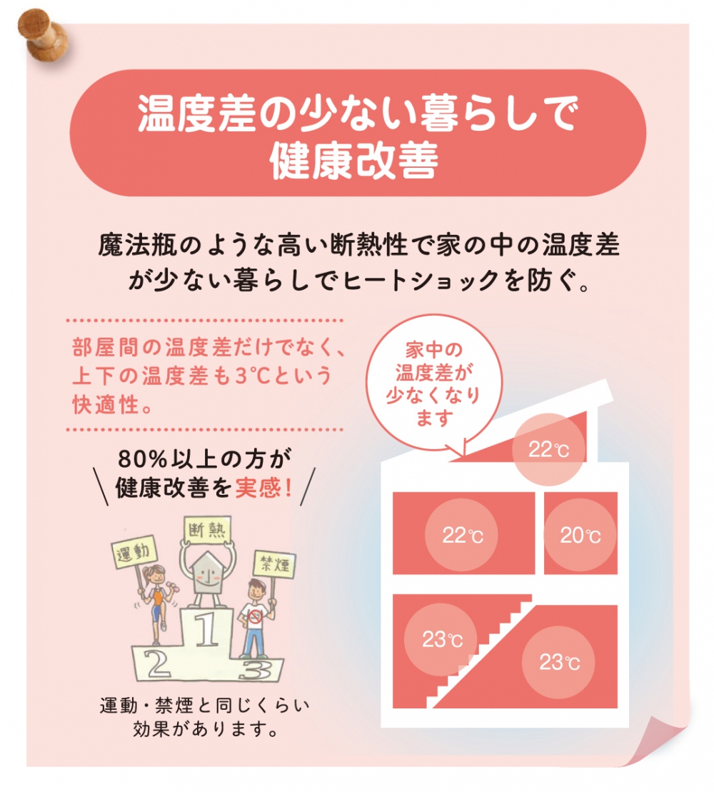 理 由 : 気密性や断熱性が高いおかげか、今年の猛暑でも家の中がそこまで暑くなく冷房の効きもいいので快適に暮らせています。