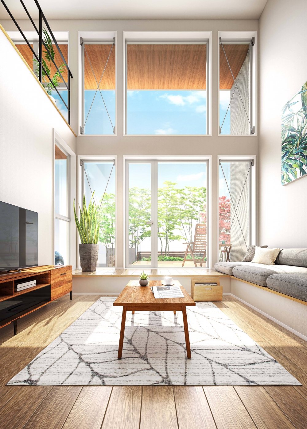 洋風モダン、家族で楽しむ、広々リビング、大きな吹抜け、癒しの空間、光あふれる空間 |