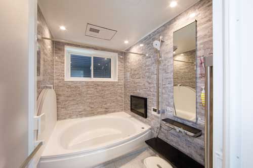 数多くある標準装備の中で人気の高い1.5坪の大型バスルーム。家族みんなで入っても余裕の広さ