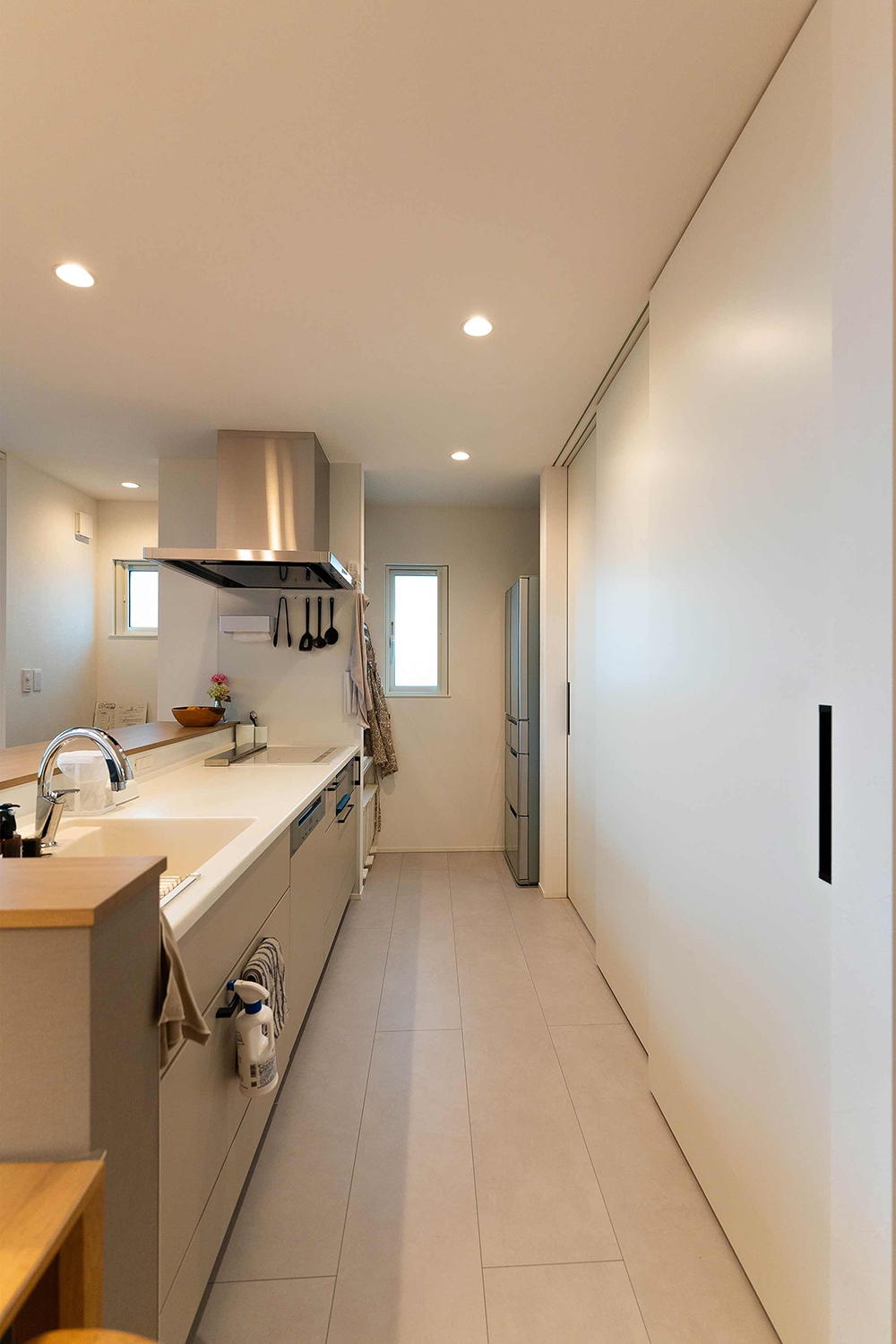 奥に冷蔵庫を配置つつ、調理のしやすさを追求したキッチン