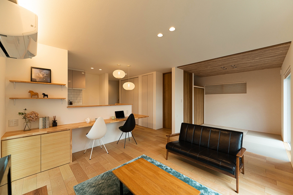 和の雰囲気をちりばめ、家族の繋がりを感じさせるLDK