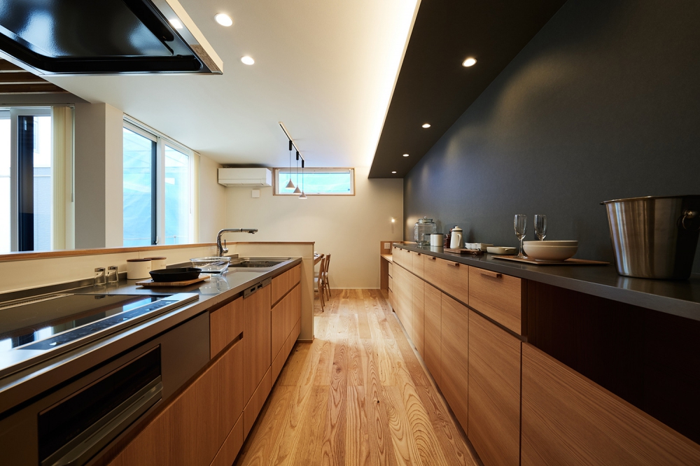 シャープな印象と木目の温もりが調和した飽きのこないデザインに仕上げた。