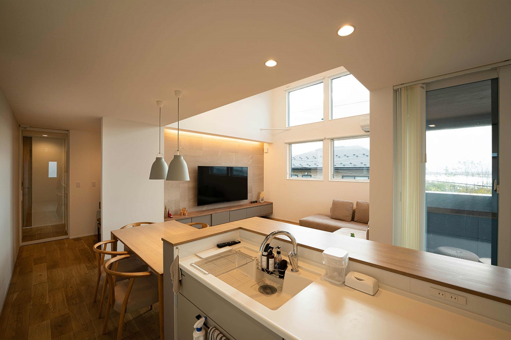 LDKには大きな窓を設け、パノラマが広がる。