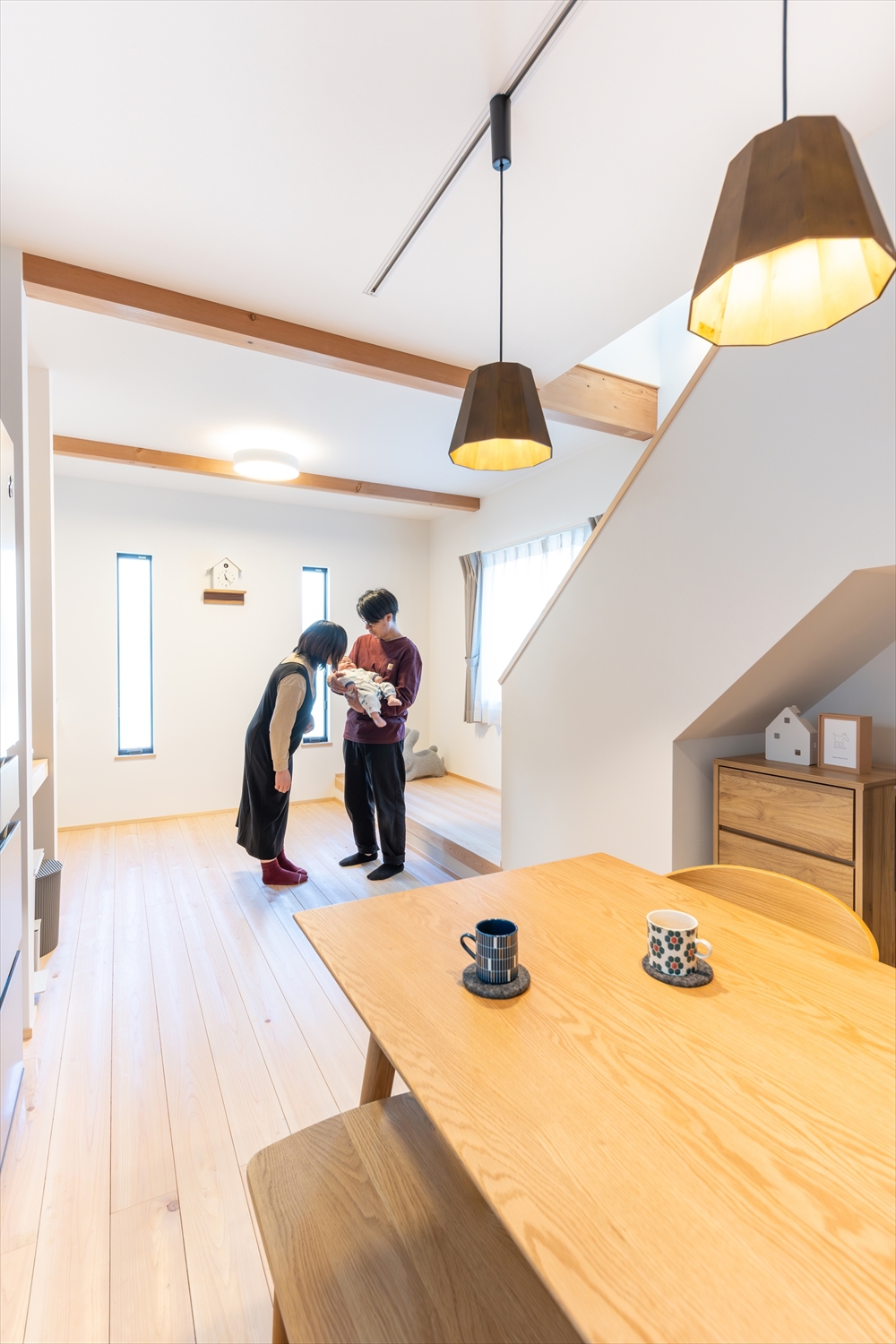 温度ムラの少ない全館空調システムを搭載した赤ちゃんにもやさしい住まいです。お子さんが新生児の頃は、お休みスペースとしても活用できる小上がりのおかげで、1階で暮らしが完結できてとても便利だったとのこと。