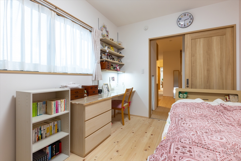 建具で仕切ることが出来る子ども室。家族の成長や暮らしの変化に合わせて使えるように可変性を持たせました。