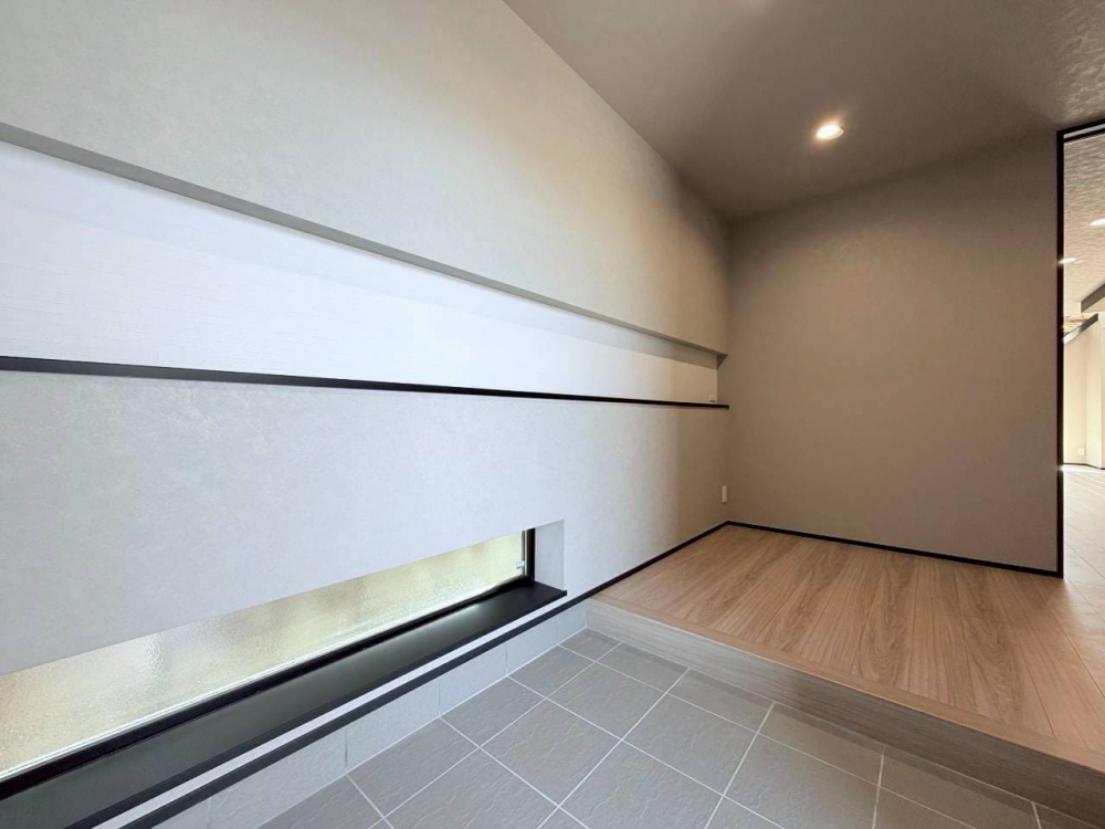 玄関にはおしゃれなニッチを設置しました。レンガのクロスがアクセント!
