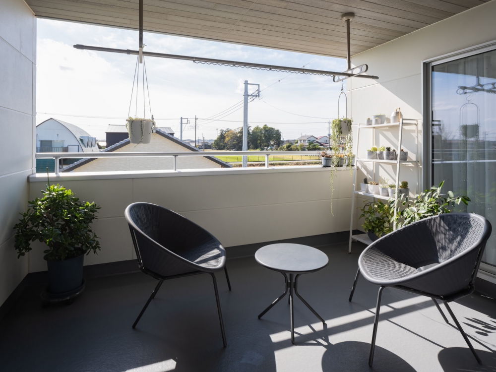 約6帖のゆとりあるインナーバルコニーには給水栓を備え、BBQやガーデニングなど多彩な楽しみ方が可能です。ご主人のご希望だった日光浴スペースとしても活躍します。