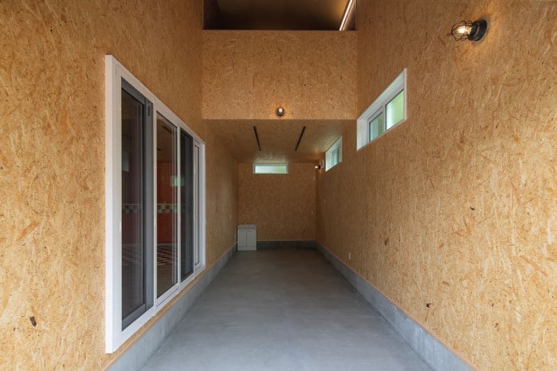 広々とした吹き抜けを設けたバイクガレージは、まさに趣味を存分に堪能できる特別な空間です。