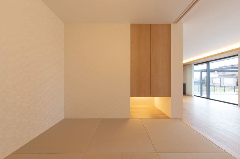 リビングの一角に設けた約4.5帖の和室コーナーは、仕切りを開放すればリビングと一体の広々とした空間として活用できます。
