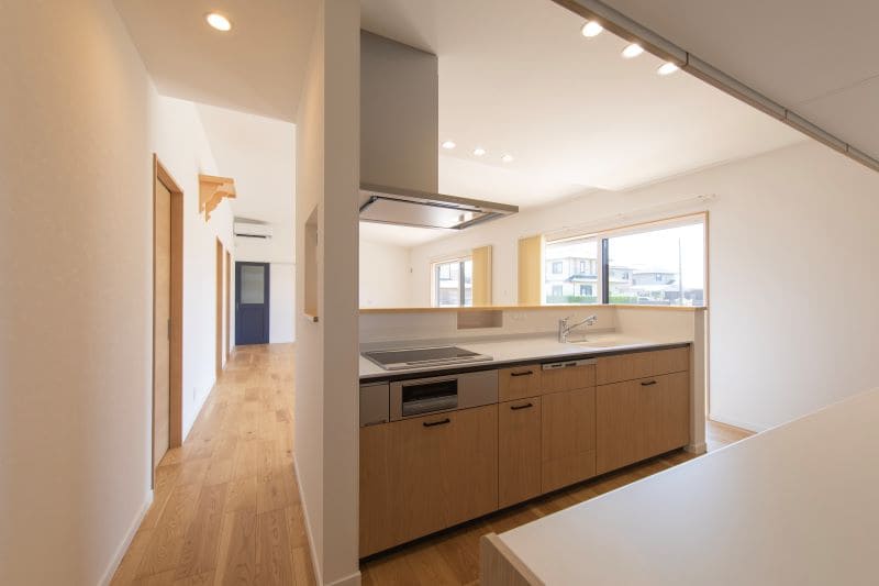 二方向から行き来ができる使いやすいキッチンまわり。