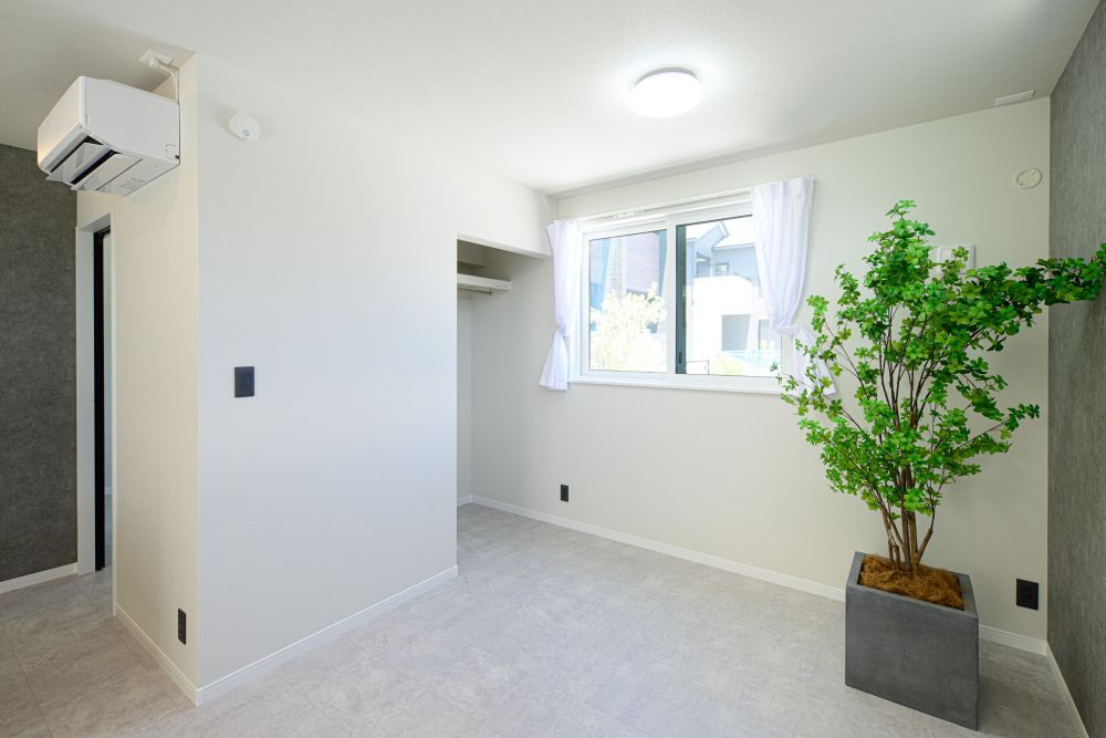 自然光と木目調の家具が調和する、ナチュラルで落ち着く居室。
