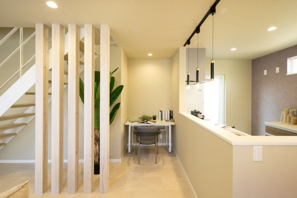 キッチン横のデスクは、趣味や仕事に集中できる便利な特等席。