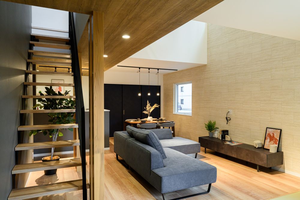 スタイリッシュな階段が、家族の絆を繋ぐリビングのアクセントに。