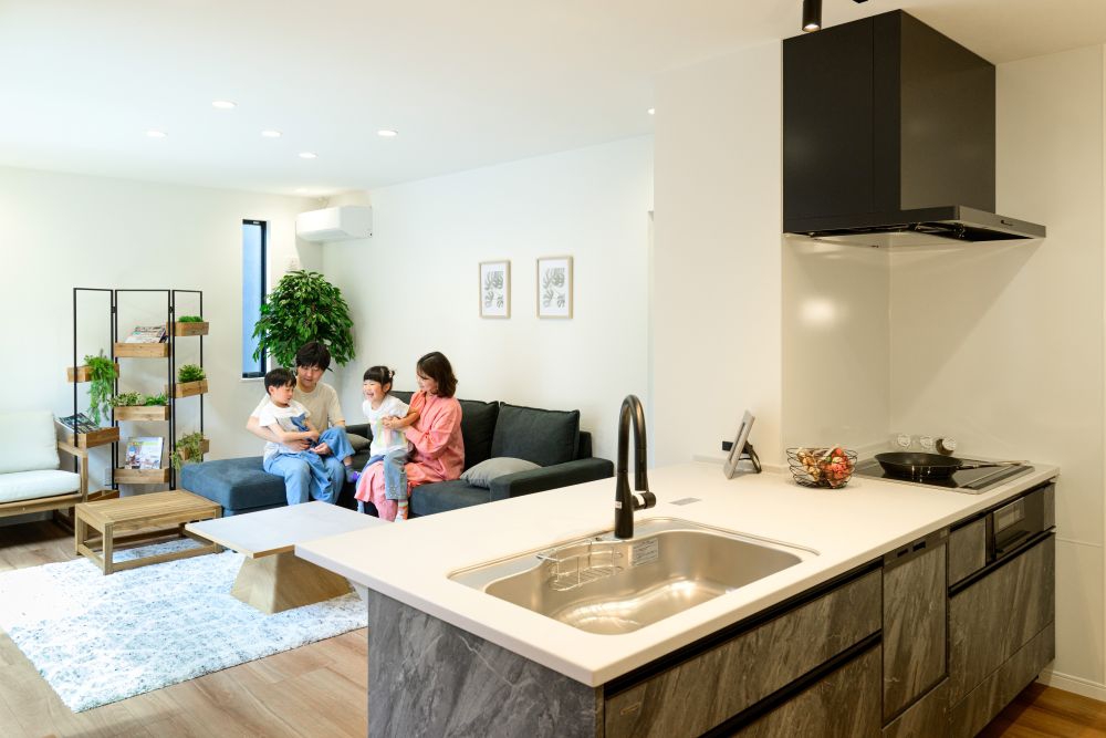 家族の笑顔が集まる、キッチンから全体が見渡せる大空間LDK。