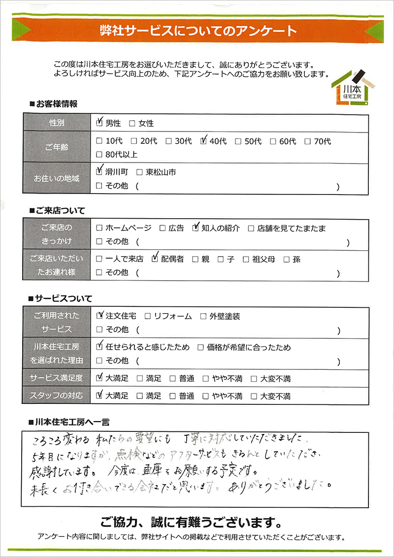 滑川町、東松山市周辺でマイホームを建てるなら、ぜひ、川本住宅工房をご指名ください。安心と満足を実感していただける家づくりをお約束します。