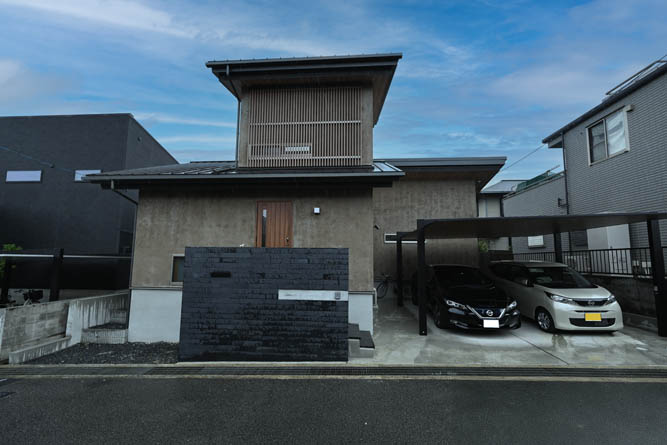 外観にはシラス塗り壁を採用。景観になじむように落ち着いた和風モダンテイストに