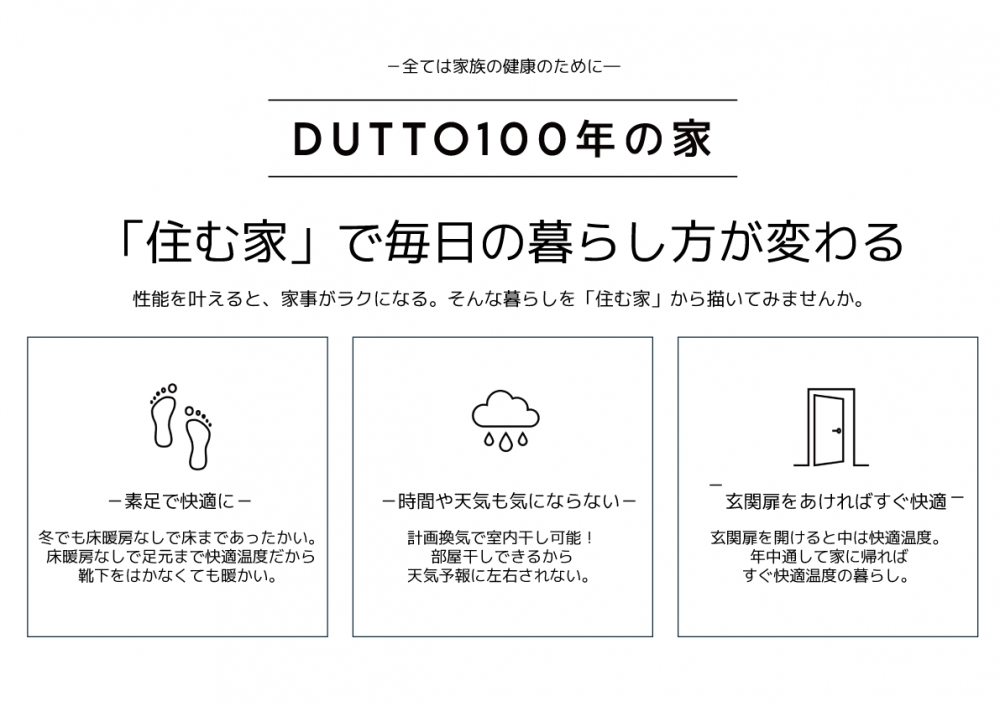 DUTTO100年の家が家事ラクをかなえる。これからもジブン時間を大切にする住まい |